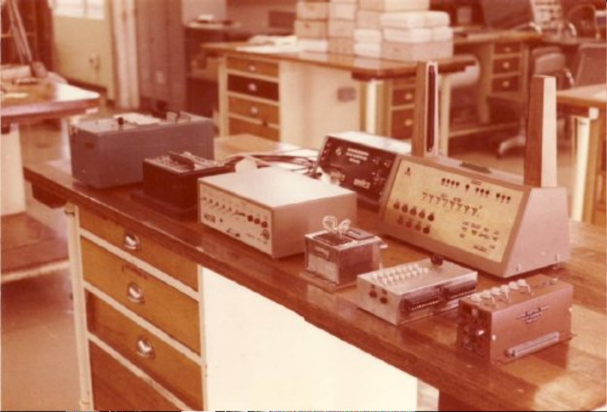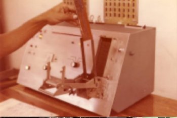 Board Comparator, which compares a good and bad board. Signals are sent to both boards on the input pins, and the comparator monitors the output pins. As soon as the outputs differ, the machine will halt, indicating which output pin failed. The operator now traces the fault using a logic probe and relavent schematic. |